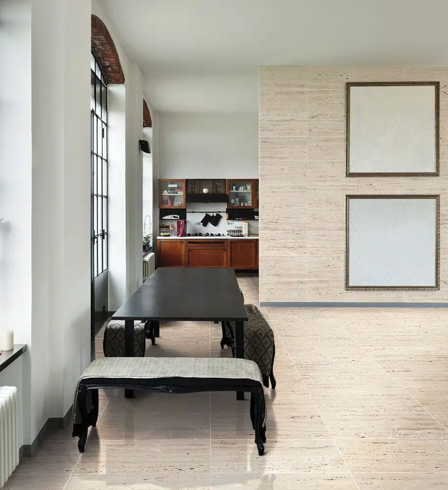 Due to its simple and elegant appearance, ivory vein cut travertine blends well with many different styles of design. Additionally, since it is a natural material, each piece has its own unique pattern, providing a distinctive look to each application. This feature makes it a preferred choice by architects and interior designers.